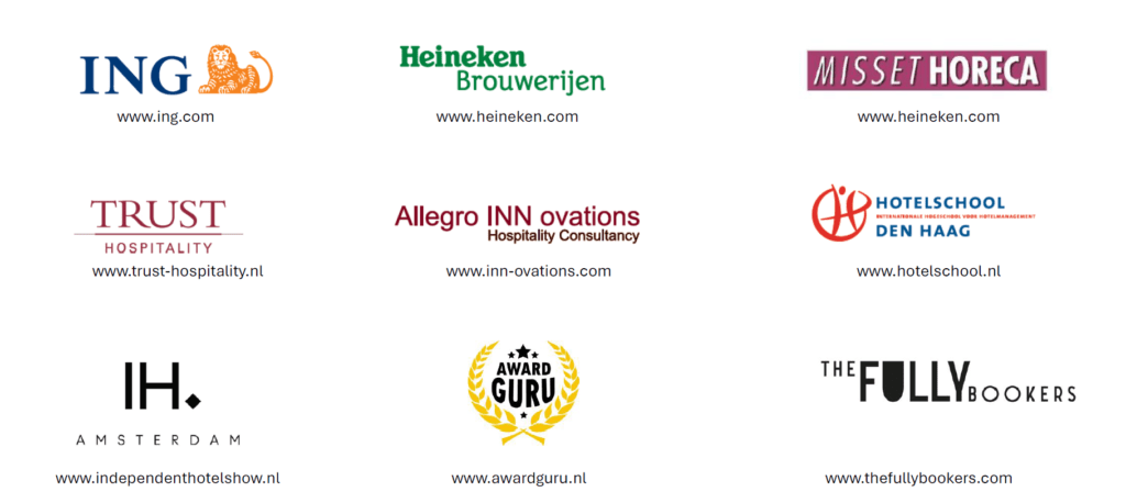 De Dutch Hotel Award heeft geen winstoogmerk. Er worden geen inkomsten gegenereerd. We zijn daarom enorm blij dat de activiteiten mogelijk zijn dankzij onze sponsors. We zijn hen dan ook zeer erkentelijk!